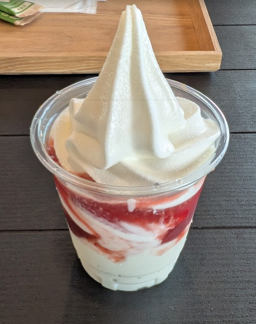 苺とヨーグルトが層になっていて、その上にアイスが乗ったスイーツ。